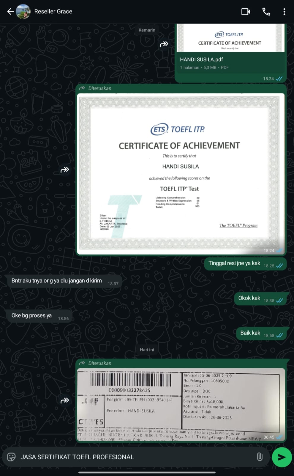 Bangun portofolio untuk karir Anda disini, buat masa depan lebih meyakinkan. Menyediakan berbagai macam solusi penerbitan dokumen bahasa internasional seperti TOEFL, TOEIC, IELTS, dan lainnya. Dengan online membuat semuanya menjadi Mudah, Praktis dan Terpercaya. Sudah memiliki ribuan customer di seluruh Indonesia.